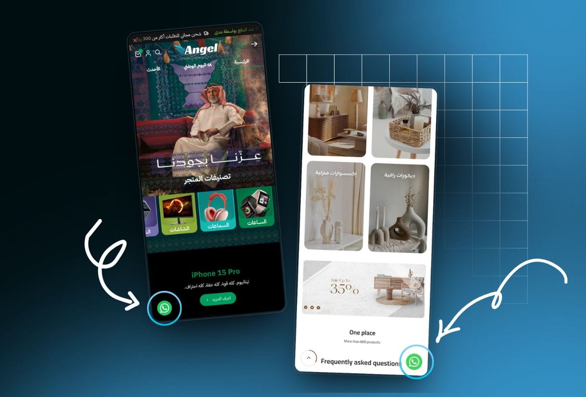 ✅ توصيل مباشر مع عملائك عبر أيقونة واتساب تظهر في متجرك بواجهة سهلة وجذابة