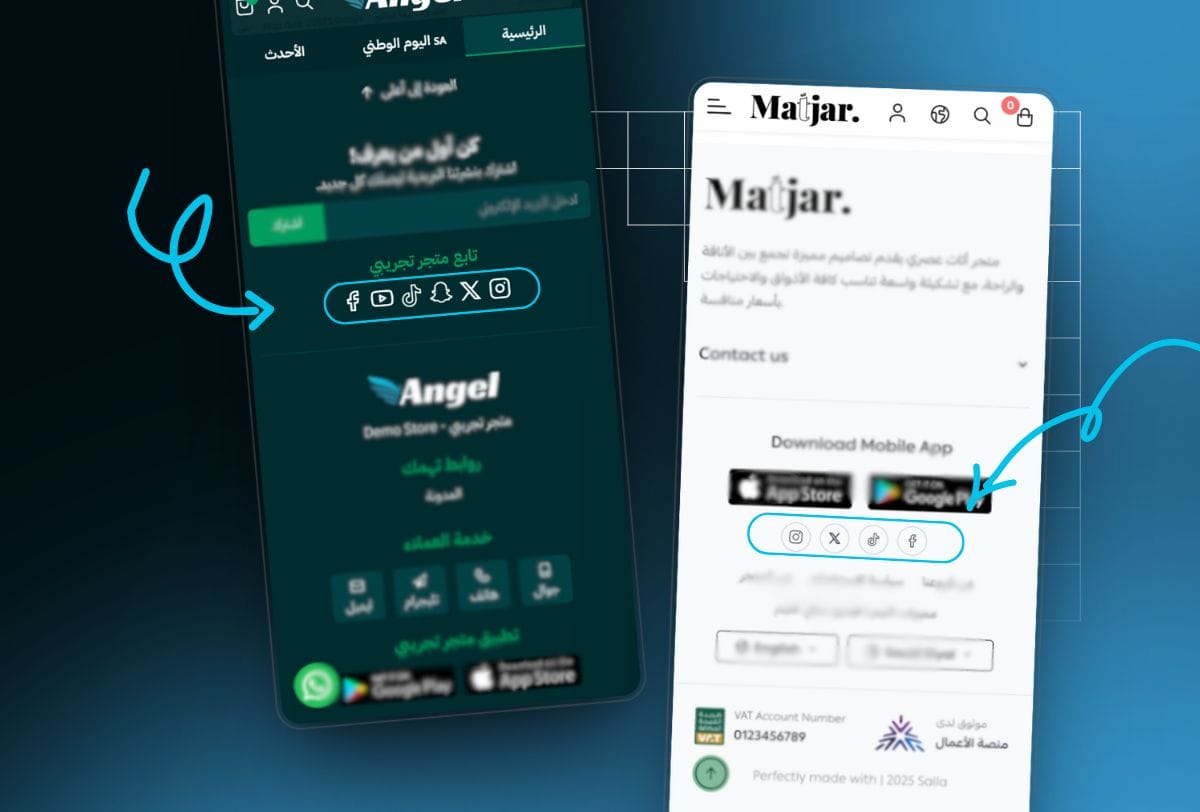وجود حسابات التواصل الاجتماعي داخل المتجر لم يعد مجرد إضافة شكلية، بل أصبح جزءًا مهمًا من بناء الثقة مع العميل وتعزيز حضور العلامة التجارية. عندما يجد الزائر روابط حساباتك الرسمية بسهولة، ويشاهد أن المتجر مرتبط بحسابات حقيقية ونشطة، فهذا يعطي انطباعًا أفضل عن نشاطك ويساعد على تقوية المصداقية والظهور المهني.