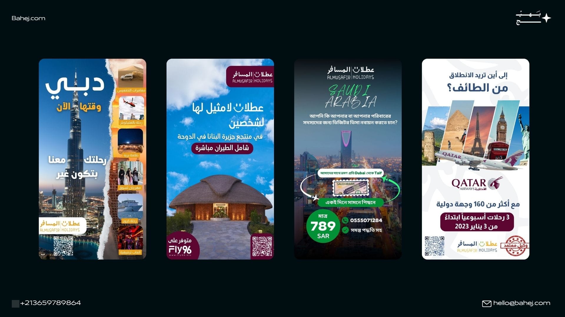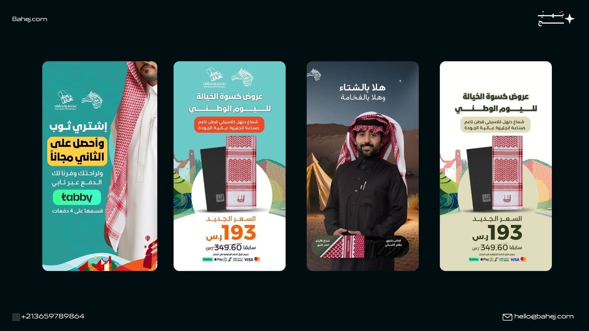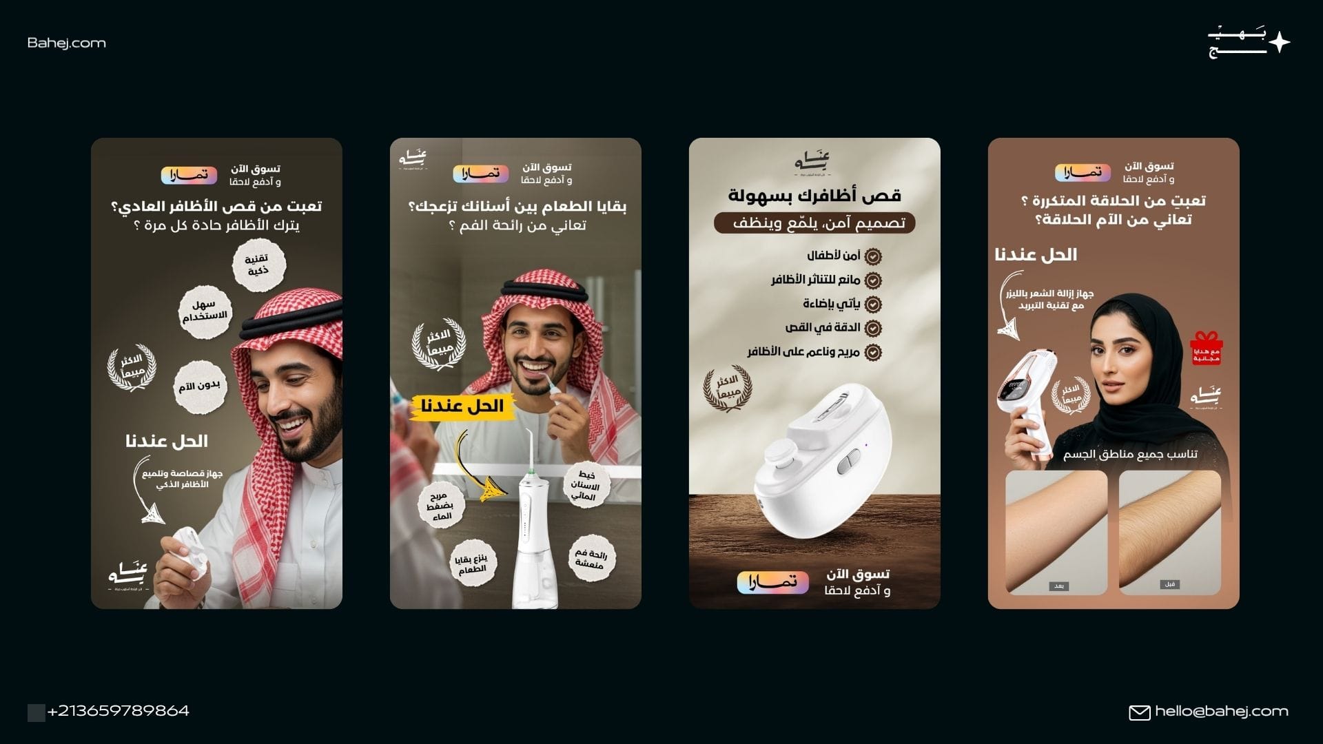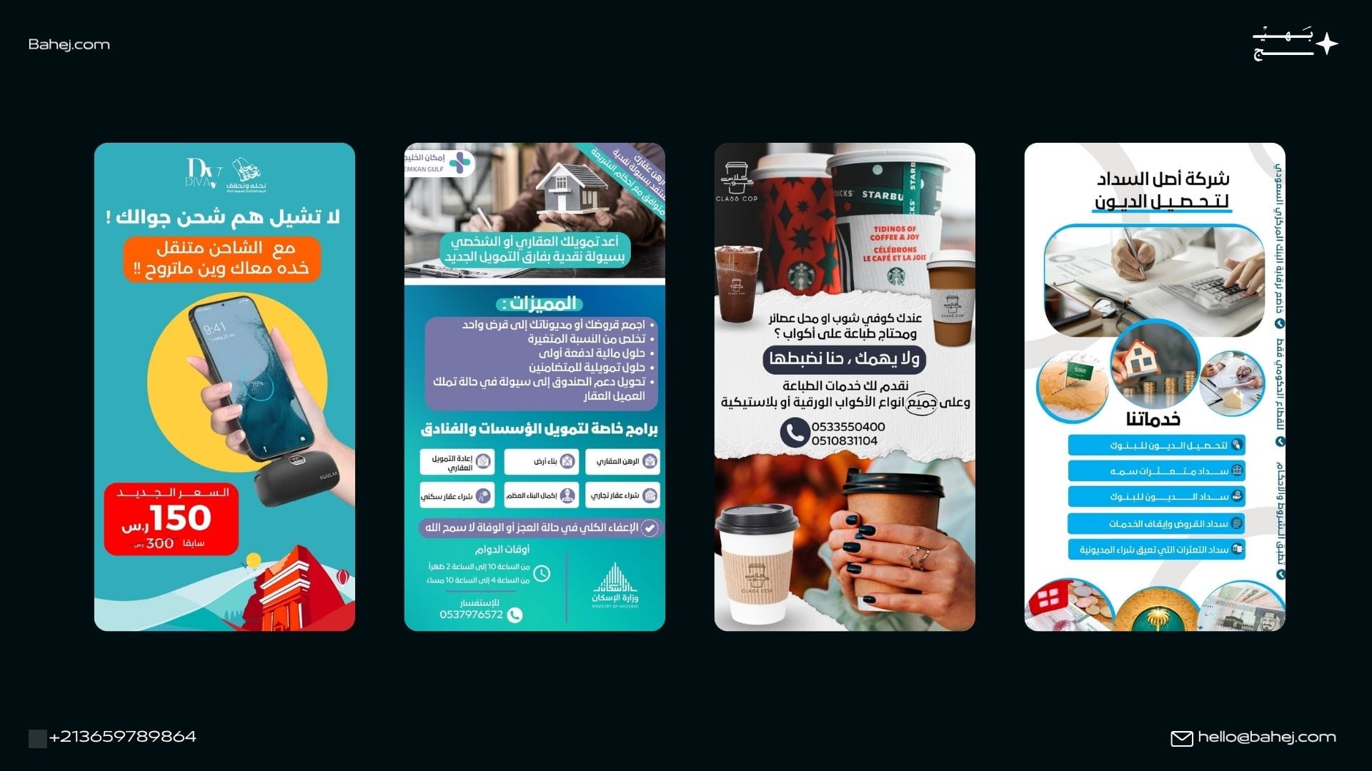 احصل على أفضل تصميم إعلانات لسناب شات وتيك توك وريلز وانستقرام معنا في Bahej، إذ اننا نقدم خدمة تصميم إعلانات سوشيال ميديا باحترافية عالية لكل صاحب عمل ومتجر يبحث عن جذب العملاء وزيادة المبيعات.
